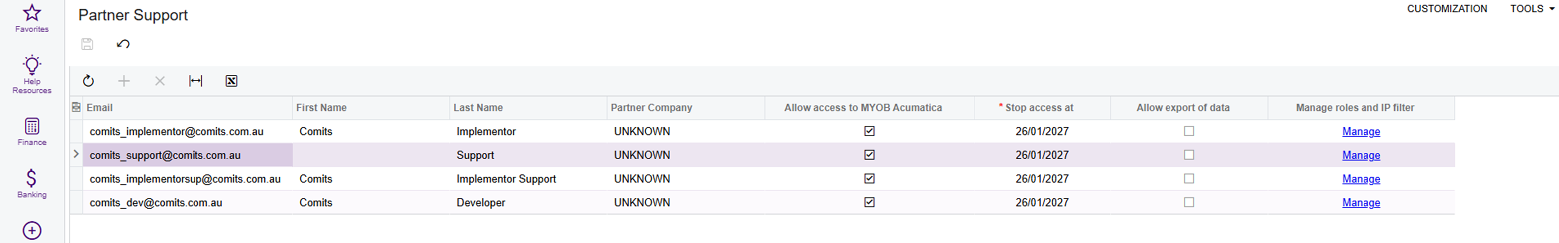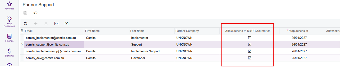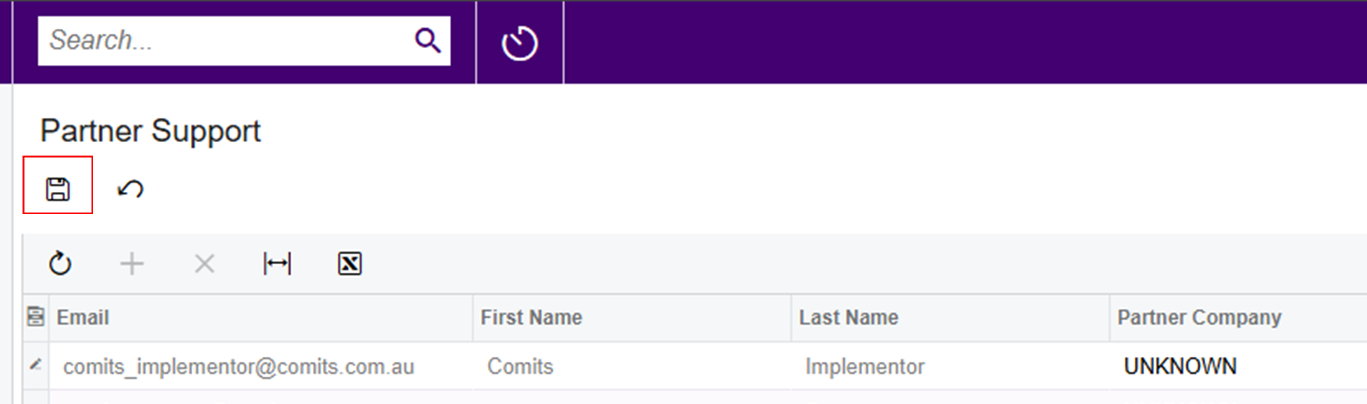 - Login into Acumatica; then Search (in the search bar) 'Partner Support' or 'MYSM2010'