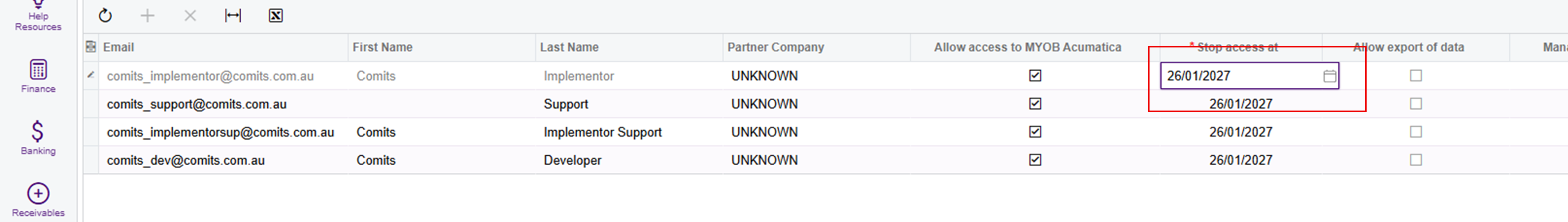 - Under 'Stop access at' double click the date for the partner user you are extending the access for (we recommend you extend this for at least 2 – 3 years).